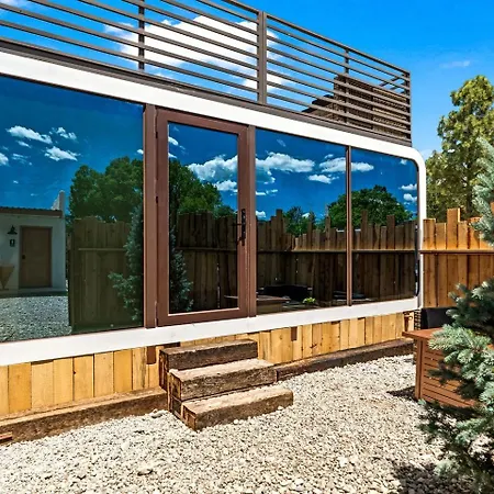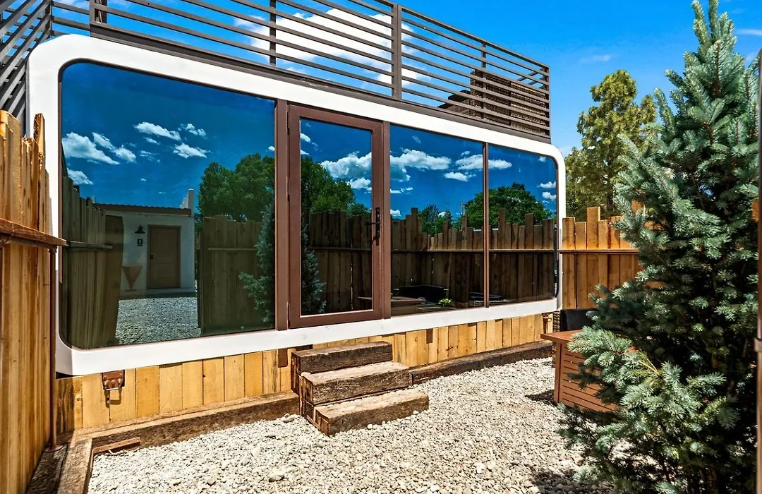 La Unique Tiny House Space Cabin With Rooftop Patio And 360° Mountain Views Near Taos, New Mexico Ranchos de Taos se encuentra a 3 km del Parque Ecológico de Taos y ofrece una sauna.